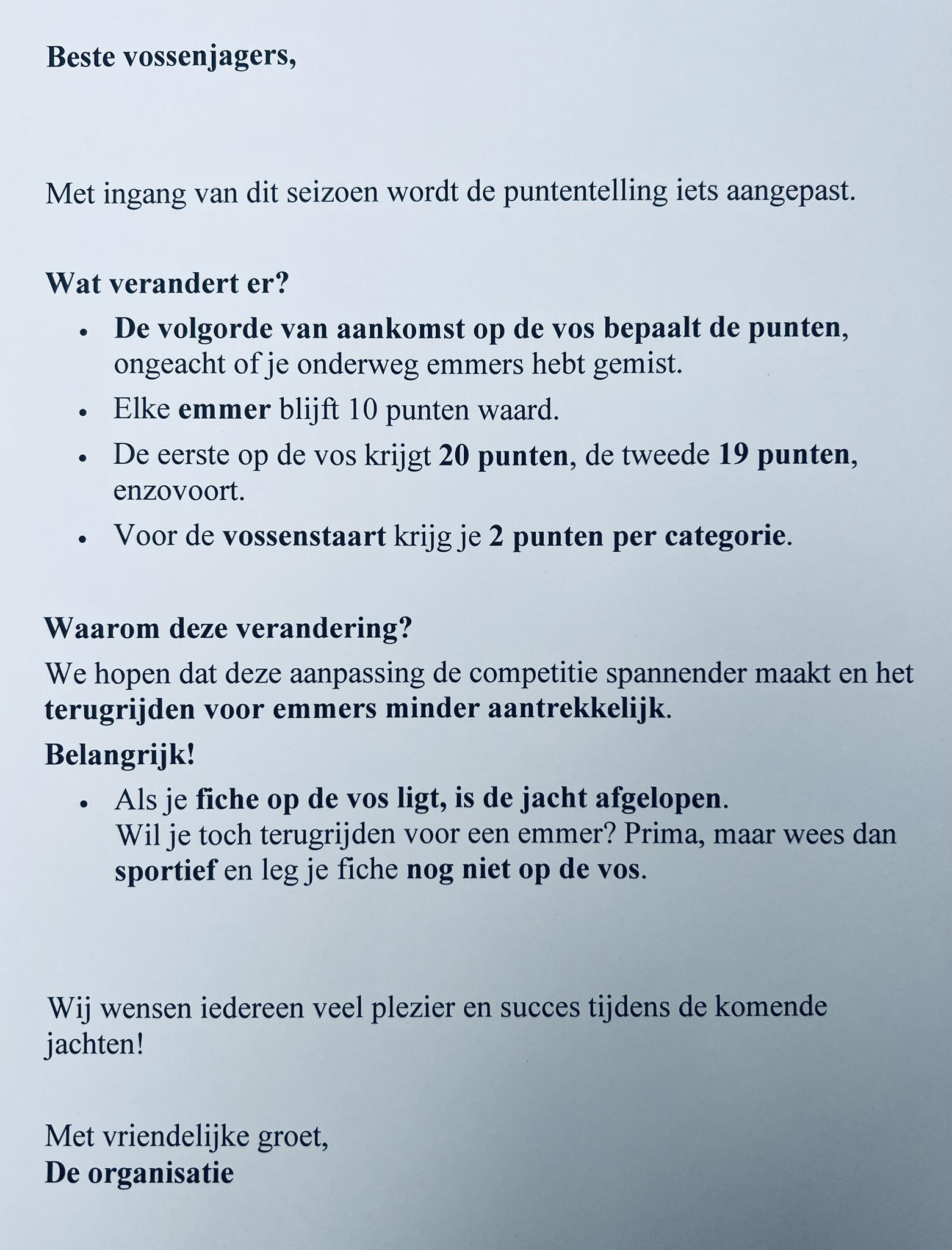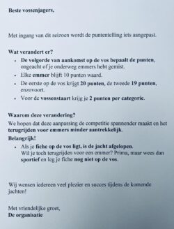 Voor leden bedragen de kosten om deel te nemen 1 euro per vossenjacht (cash te voldoen bij de start).